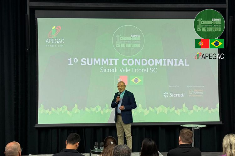 Vitor Amaral, presidente da direção da APEGAC, Associação Portuguesa de Empresas de Gestão e Administração de Condomínios, foi um dos palestrantes no 1º Websummit Condominial, realizado em Itapema, Santa Catarina, no Brasil, no passado dia 25, organizado pelo Sicredi e com o apoio institucional do Síndicos Planning, no qual participaram cerca de 300 pessoas.